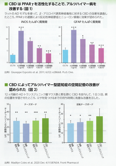さらに、トランスジェニックマウスを使った実験で、CBD投与群のマウスが認知機能や運動機能、不安行動が改善されたことが報告されています。